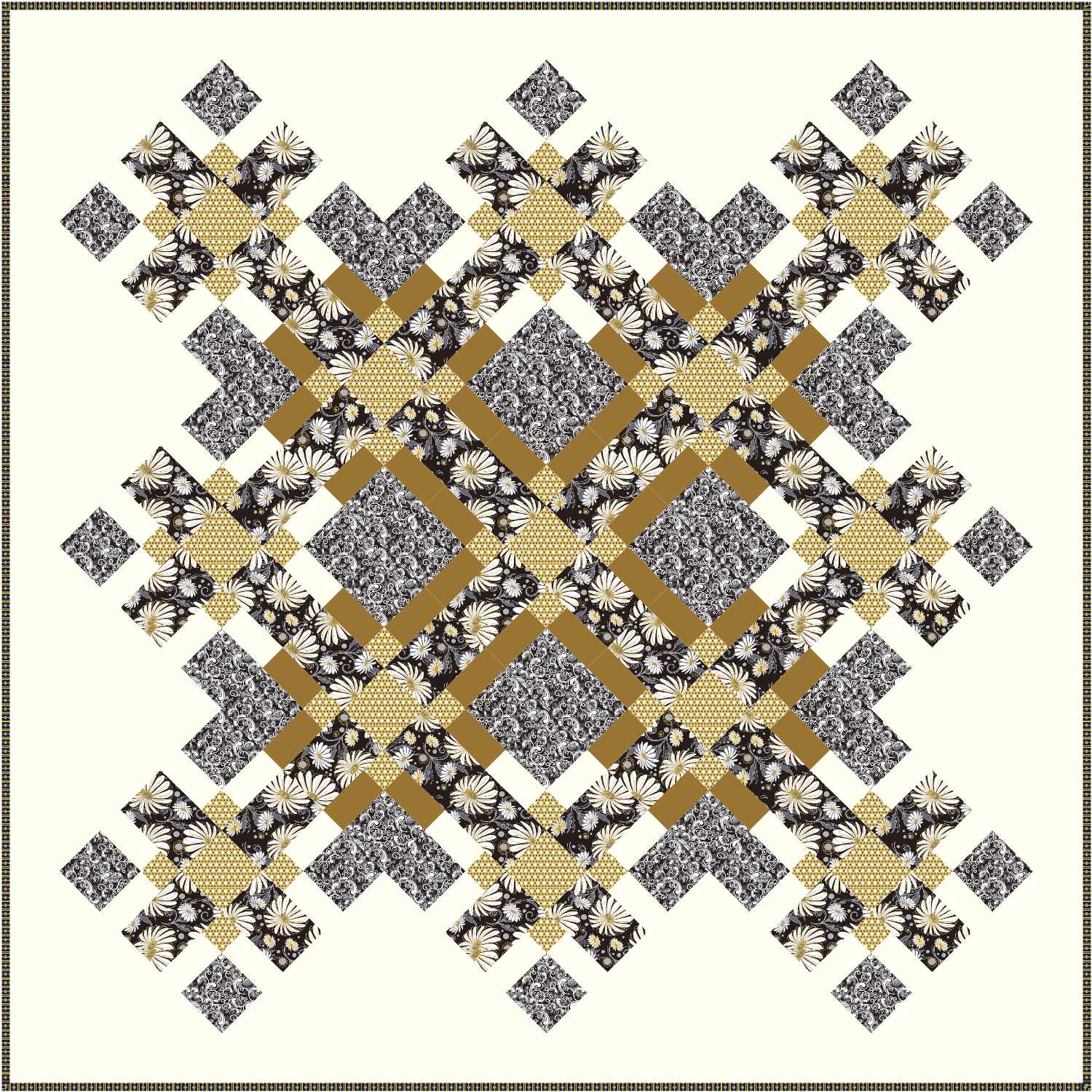 Here are some pictures of my newest pattern called "Criss Cross". There are 2 sizes: 85" x 105" and 66" x 66". The fabrics are from the new Groovin' Licorice collection by Northcott. Although the pattern is available now, the fabric will not be in stores until late Fall. But of course you can always use your own fabric choices!